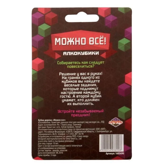 Купить кубик "можно все", алкокубики для принятия решений от 60 руб. с доставкой до пункта выдачи в Колпашево. Интернет магазин ДекаМаркет. Оплата при получении.